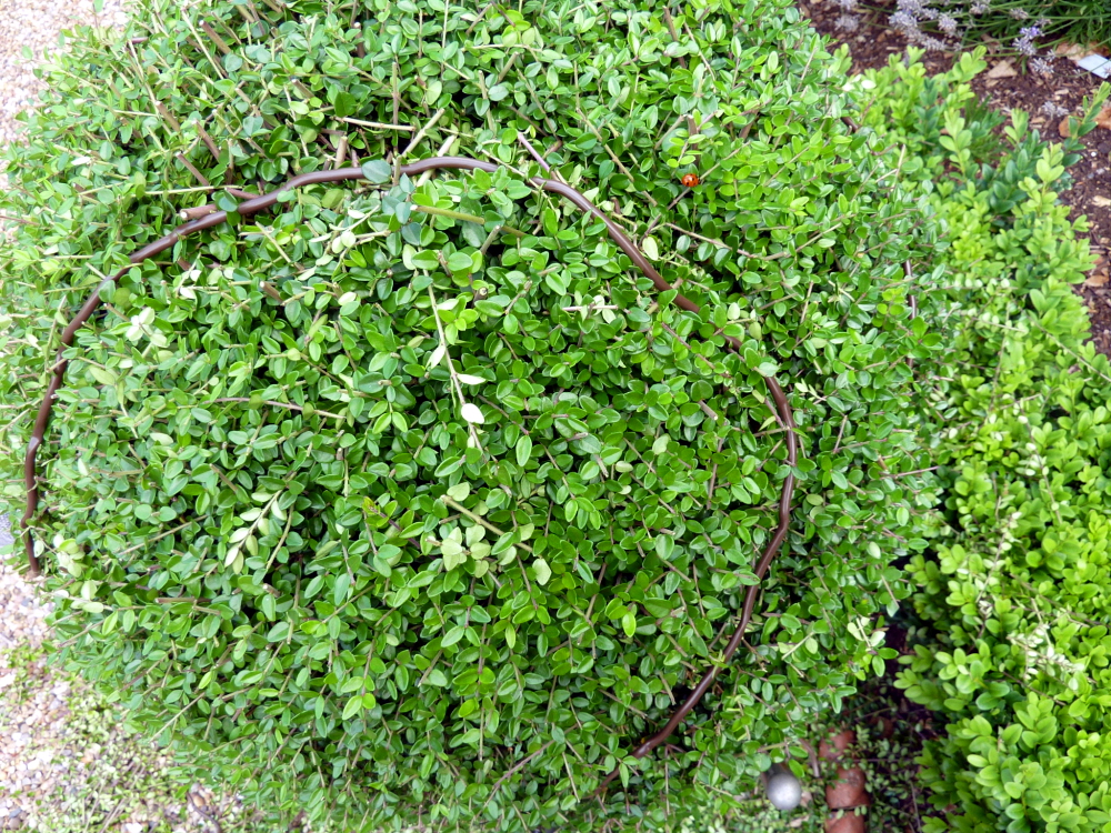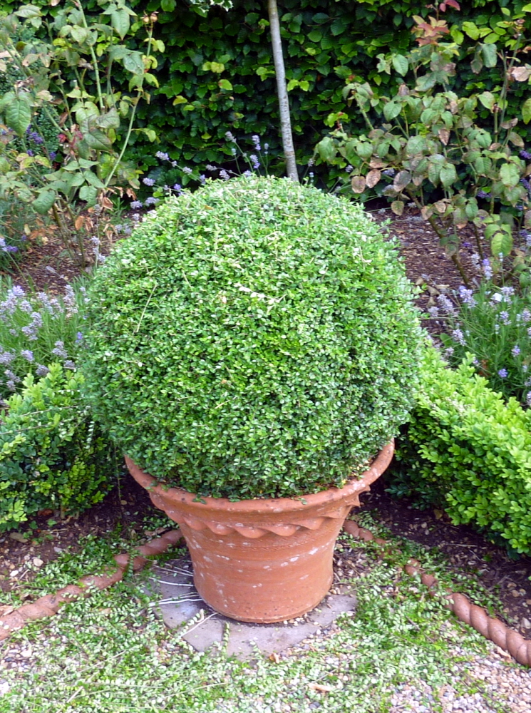 I surmise, quite a brave move for a symmetrical ball or pyramid person but after all these are Lonicera nitida and they’ll need another haircut within two weeks I suspect!